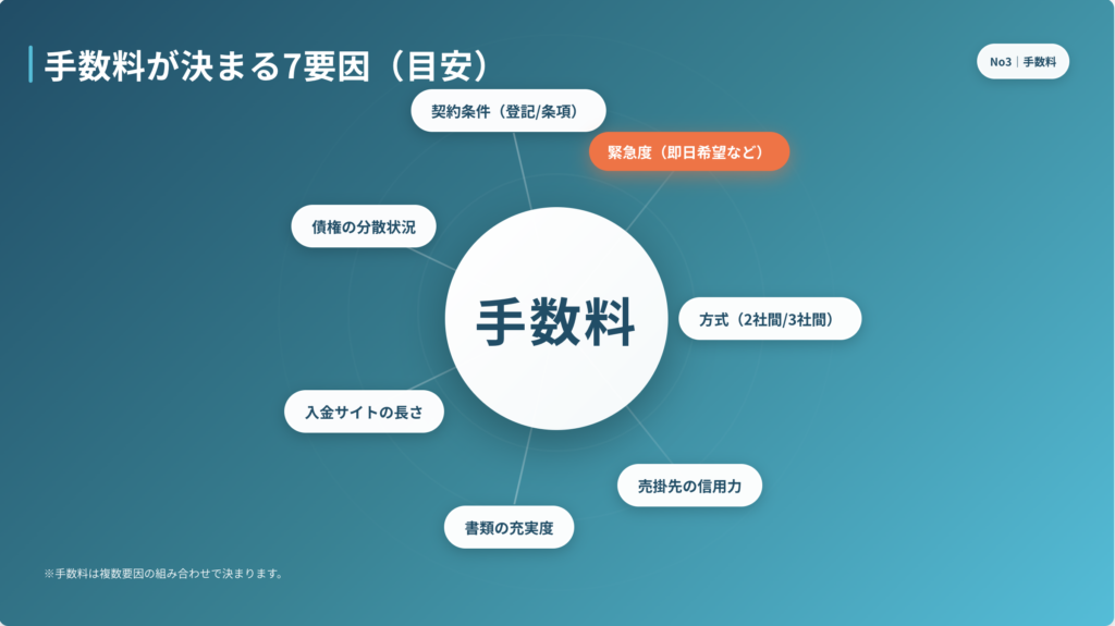 結論:手数料は「方式×売掛先×書類×契約条件」で決まります